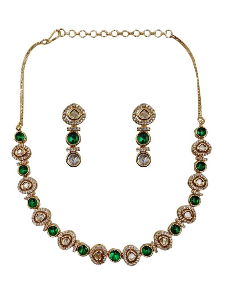 | Product Name | Gold Plated Moissanite & Green Stone Necklace Set With Matching Earrings | |