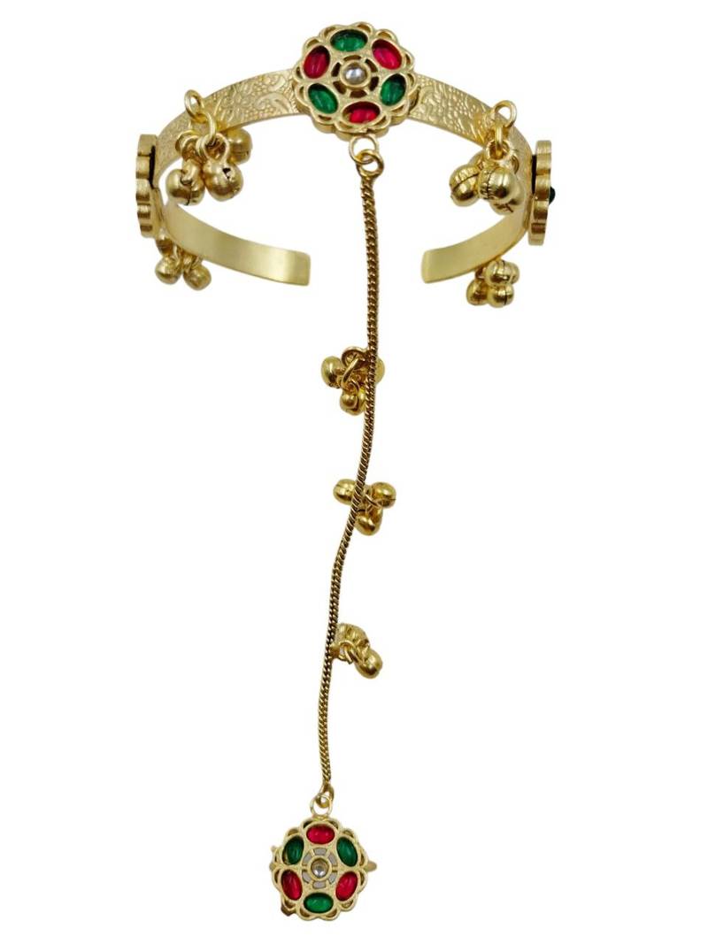 | Product Description | Add An Enchanting Finishing Touch To Your Wedding Or Festive Look With This Multicolor Gold Plated Kundan Hathphool With Floral Design A Stunning Hand Jewellery Piece That Blends Traditional Charm With Statement Style! Featuring Vibrant Multicolor Kundan Stones Set In Lustrous Gold Plated Metal, This Exquisite Hathphool Creates A Delicate Floral Motif That Beautifully Adorns Your Hand. Its Adjustable Chain Ensures A Comfortable Fit And Makes It Perfect For Pairing With Bridal Lehengas, Sarees, Or Ethnic Gowns. |