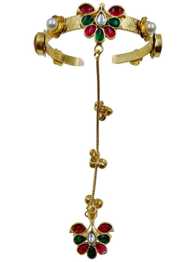 | Product Name | Pink Yellow Plated Kundan Hathphool With Floral Design | |