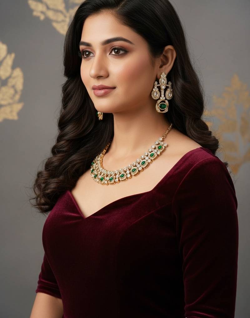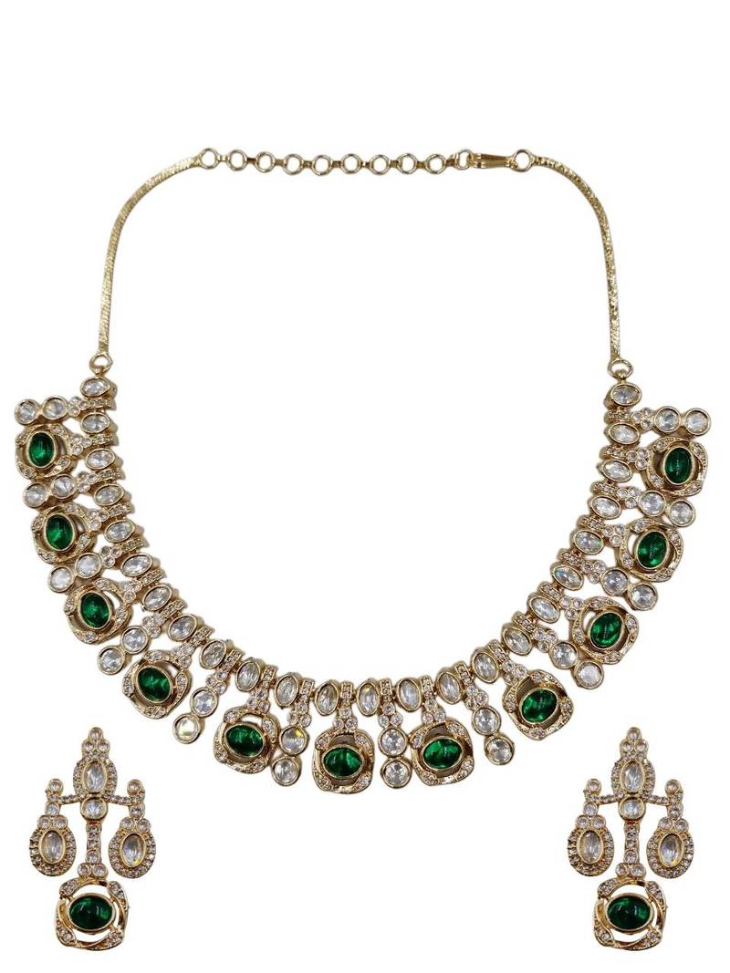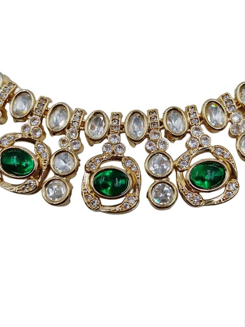 | Product Name | Traditional Gold Finish Moissanite Green Necklace Jewellery Set | |