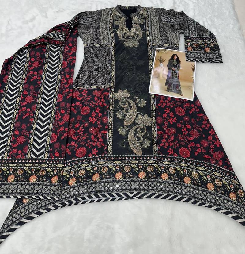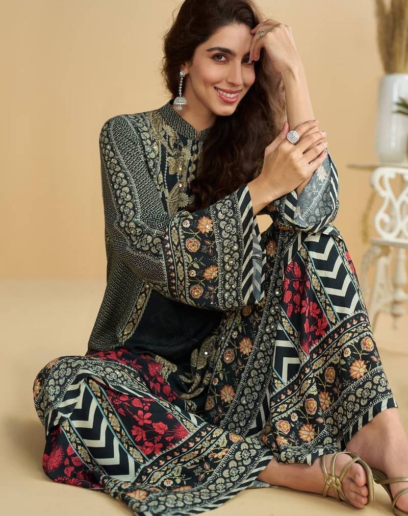 Product Name Black Heavy Crepe Digital Print Full Stitched Free Size Upto 44 Palazzo Suits