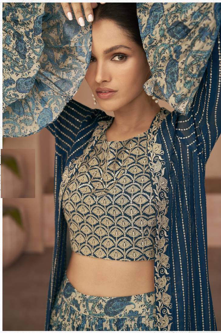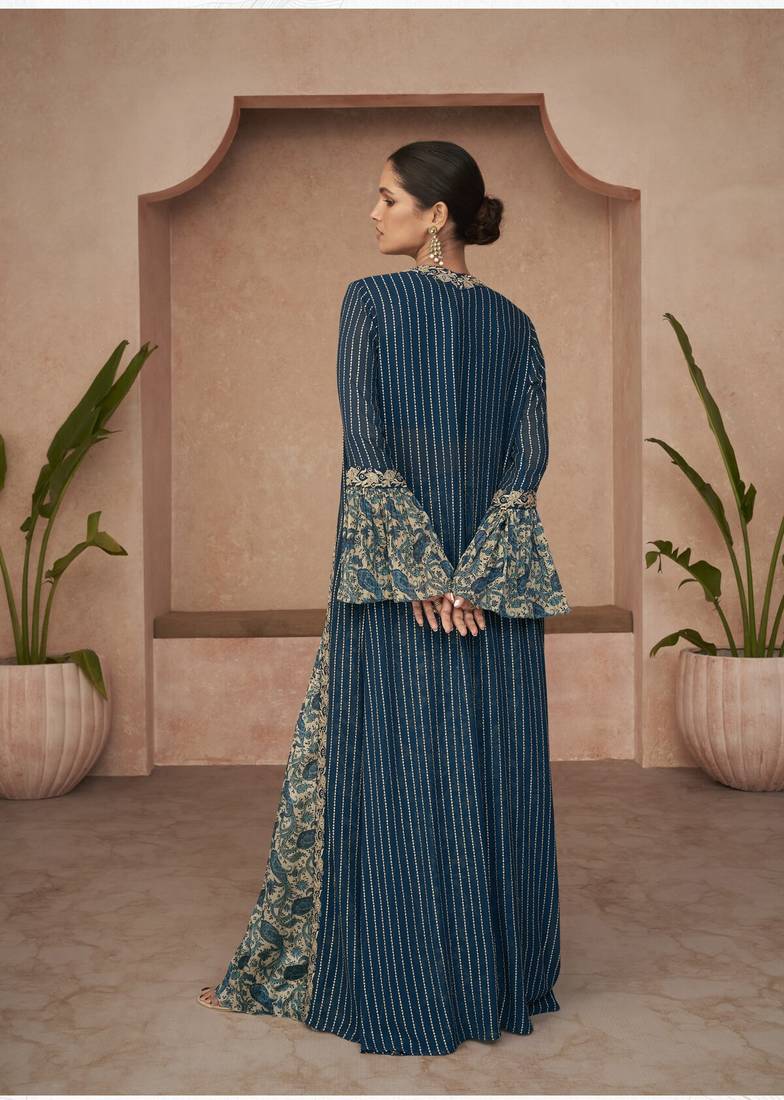 | Product Name | Dark Blue Georgette Emroidery Work Indowesteen Gowns | |