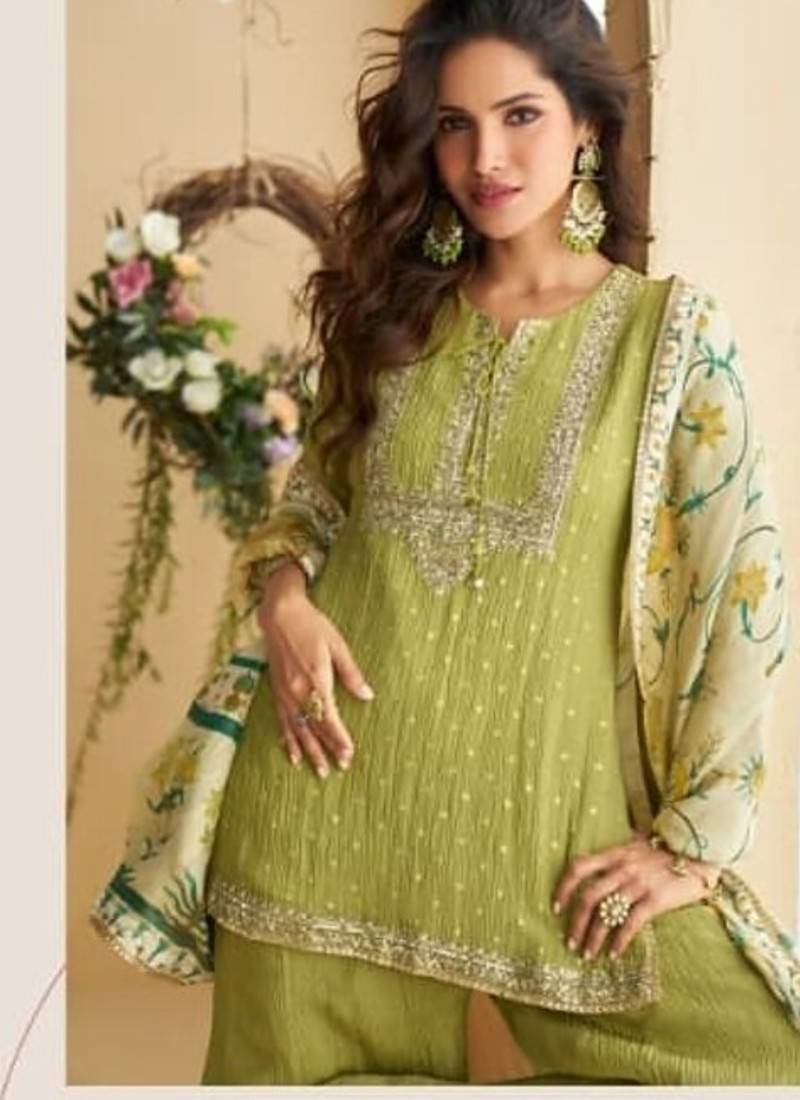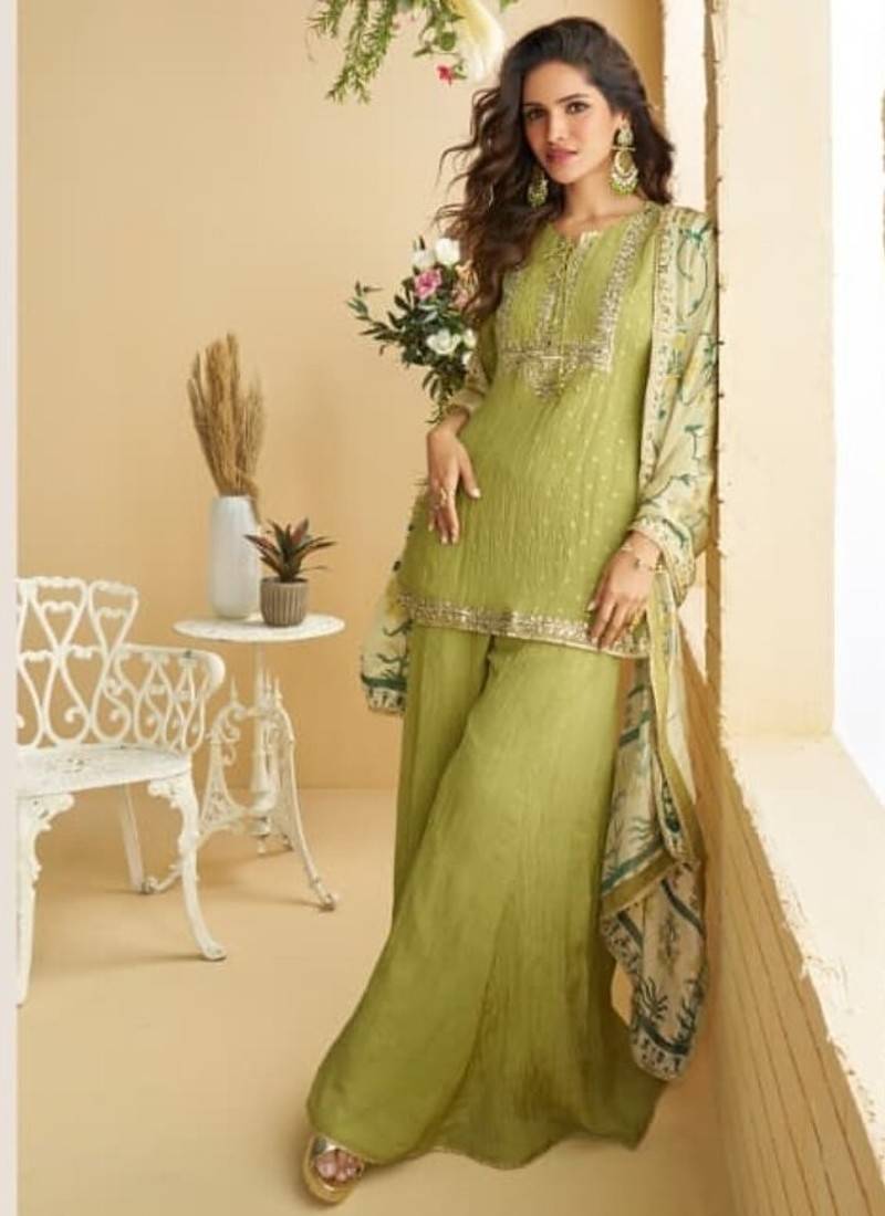 | Product Name | Leaf Green Chinon Silk Gharara Suit Full Stitched Free Size | |