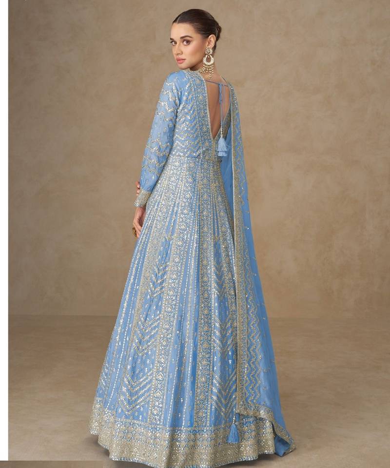 Light blue chinon silk gowns full size free size stitched