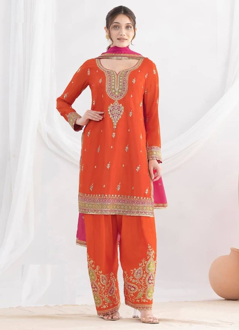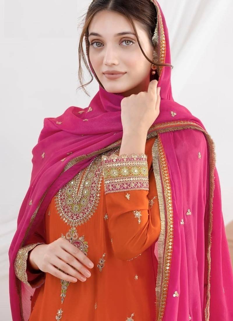 | Product Name | Orange Heavy Chinon Pallazo Suit Full Stitched Free Size | |