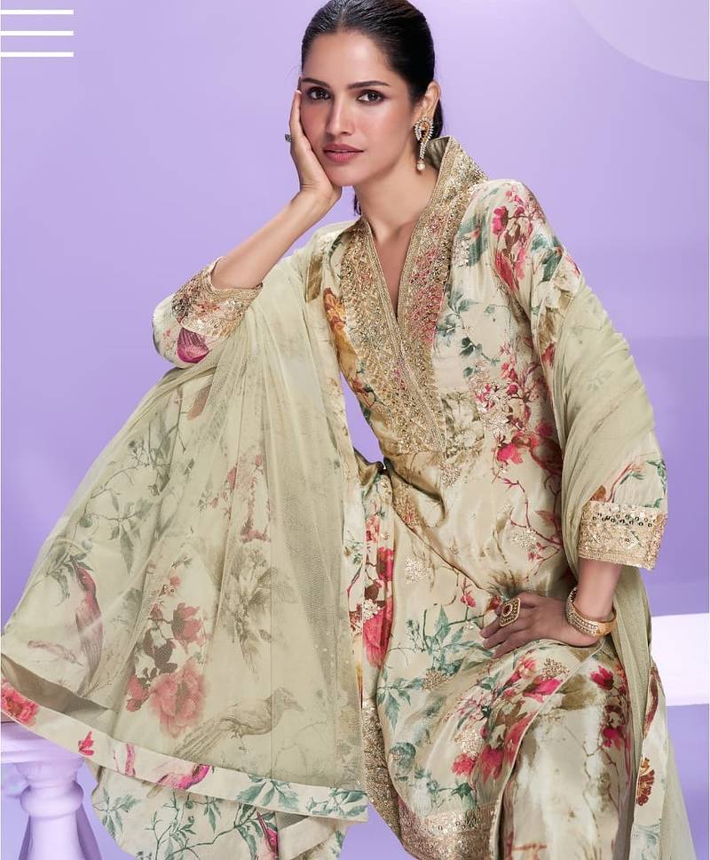 | Product Name | Pale Yellow Floral Print Full Stitched Palazzo Suits | |