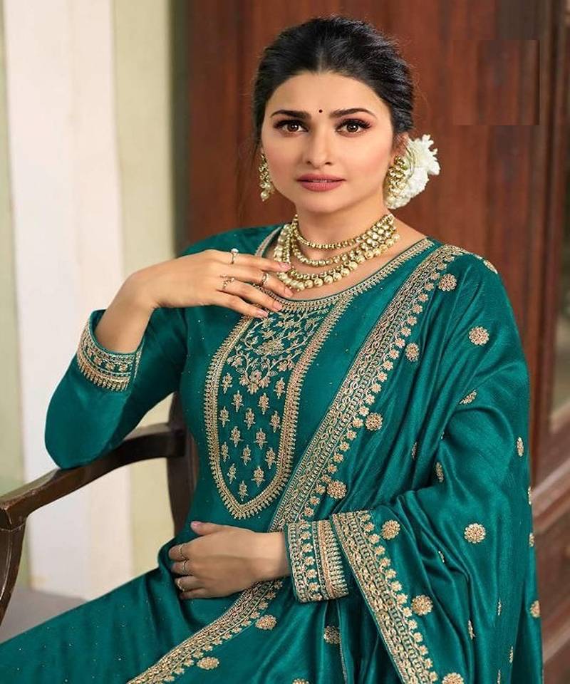 | Product Name | Sea Green Embroidery Georget Silk Semistitch Straight Suits Palazzo Salwar Suits | |
