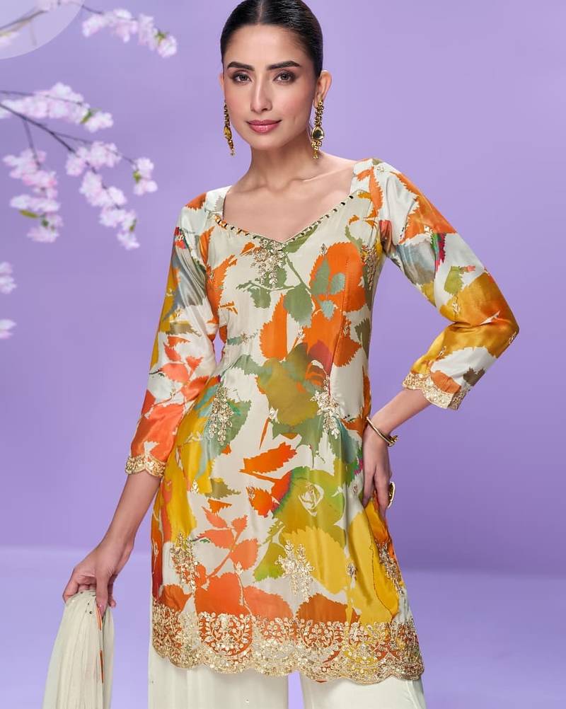 | Product Name | White Floral Print Full Stitched Palazzo Suits | |