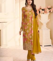 Yellow chinon silk semi stitched wedding suits