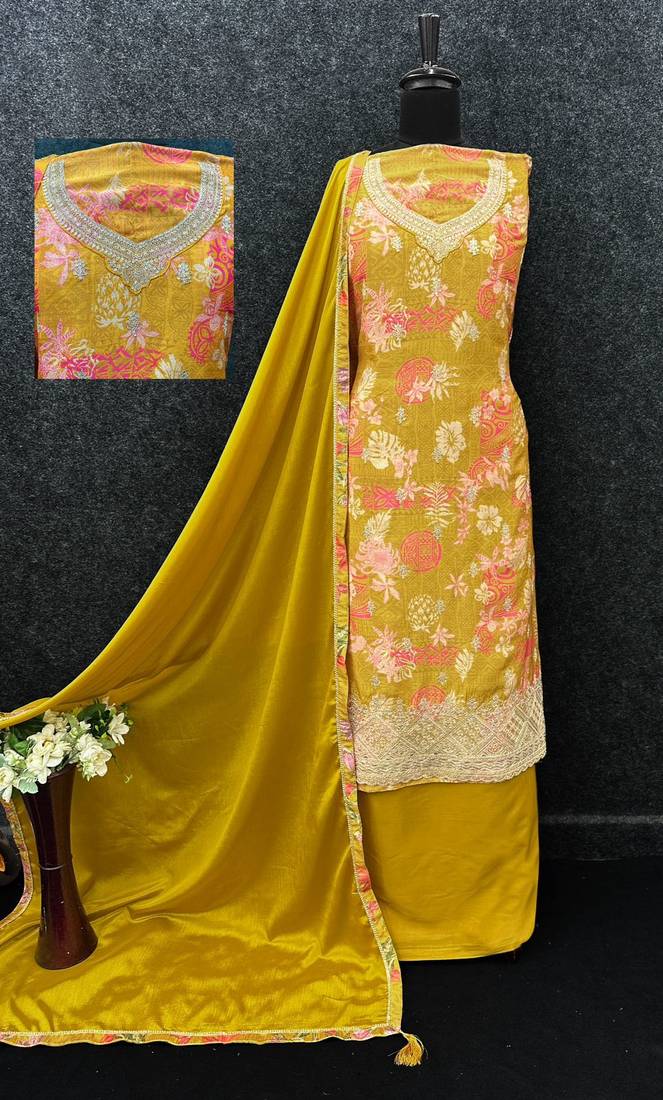 | Product Name | Yellow Chinon Silk Semi Stitched Wedding Suits | |