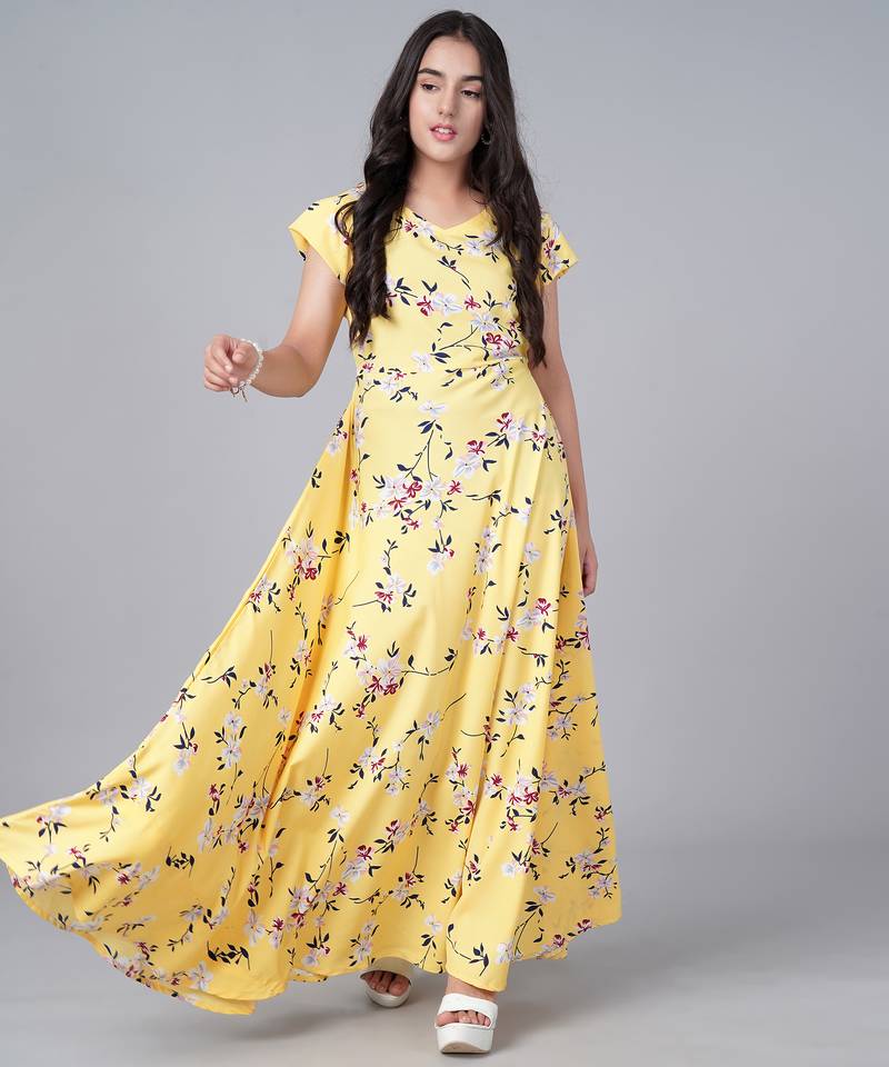 | Product Name | Yellow Printed Crepe Kids Girl Gowns | |