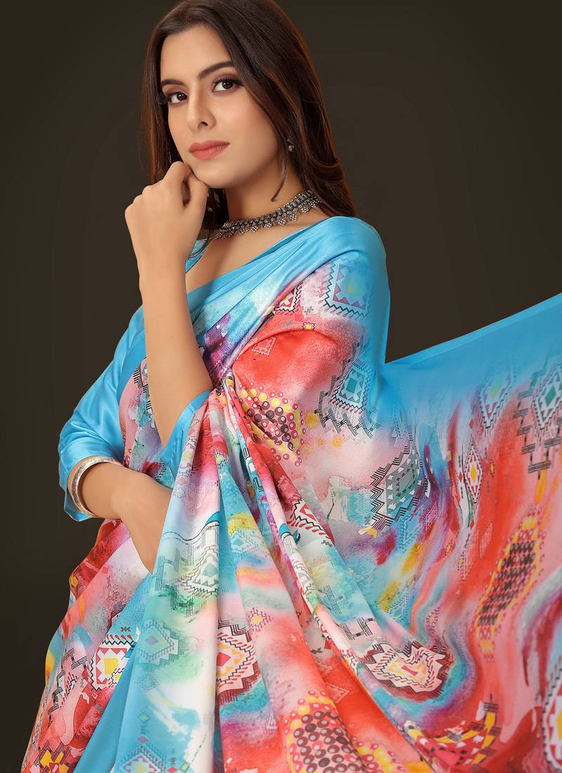 | • | Blouse | : | Color- Sky Blue / Fabric- Satin |