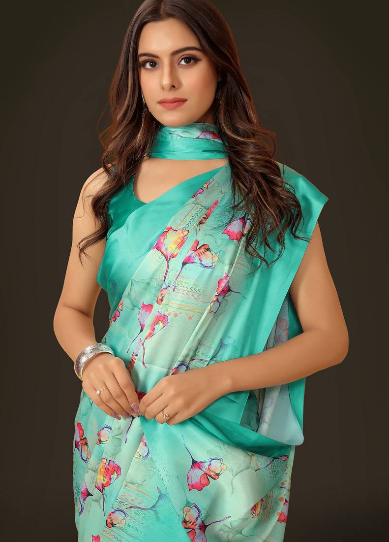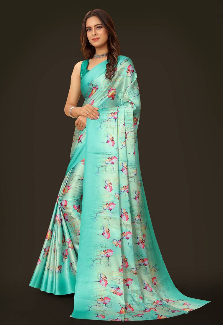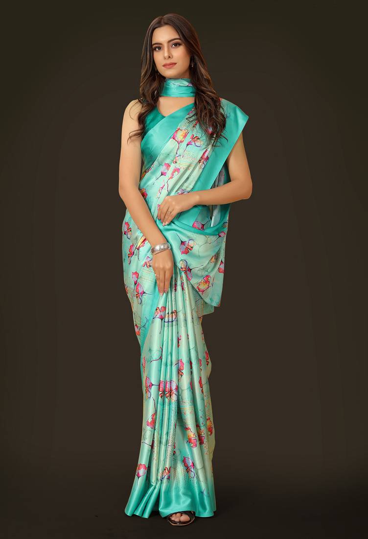 Printed satin saree