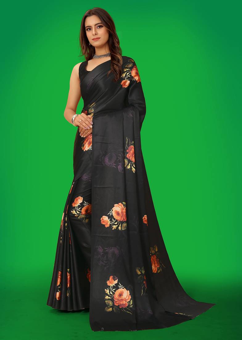 Printed satin saree