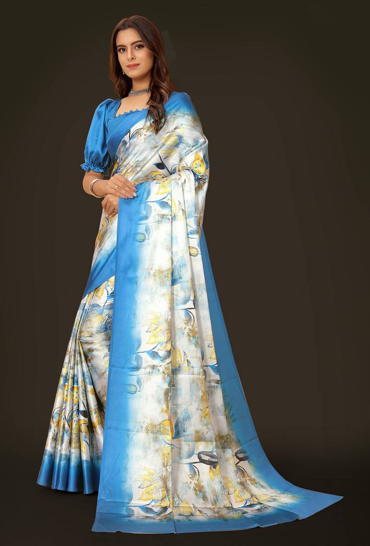 Printed satin saree
