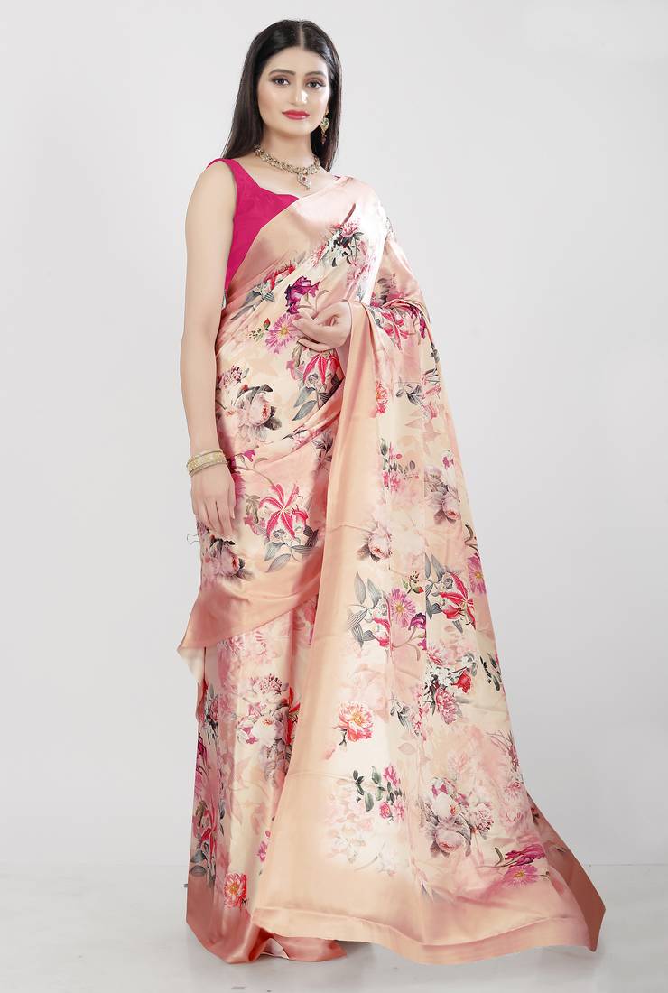 Printed satin saree