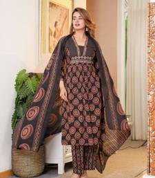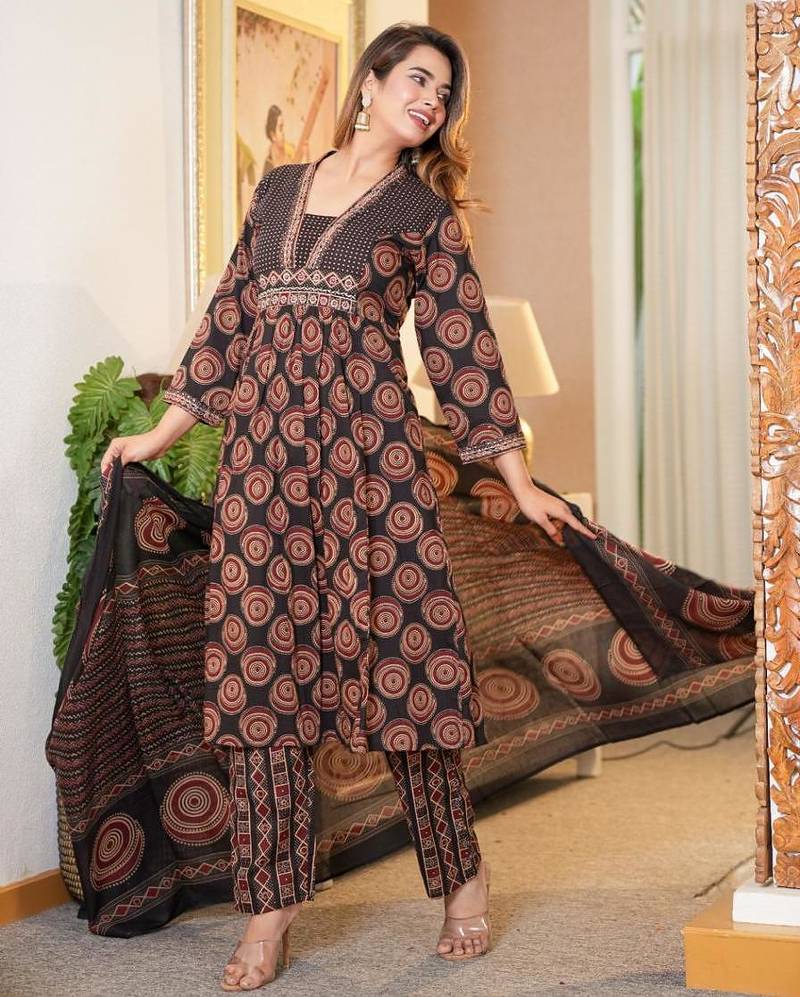 | Product Name | Aaysa Floral Printed Black Round Neck Pure Cotton Kurta With Trouser & Dupatta | |