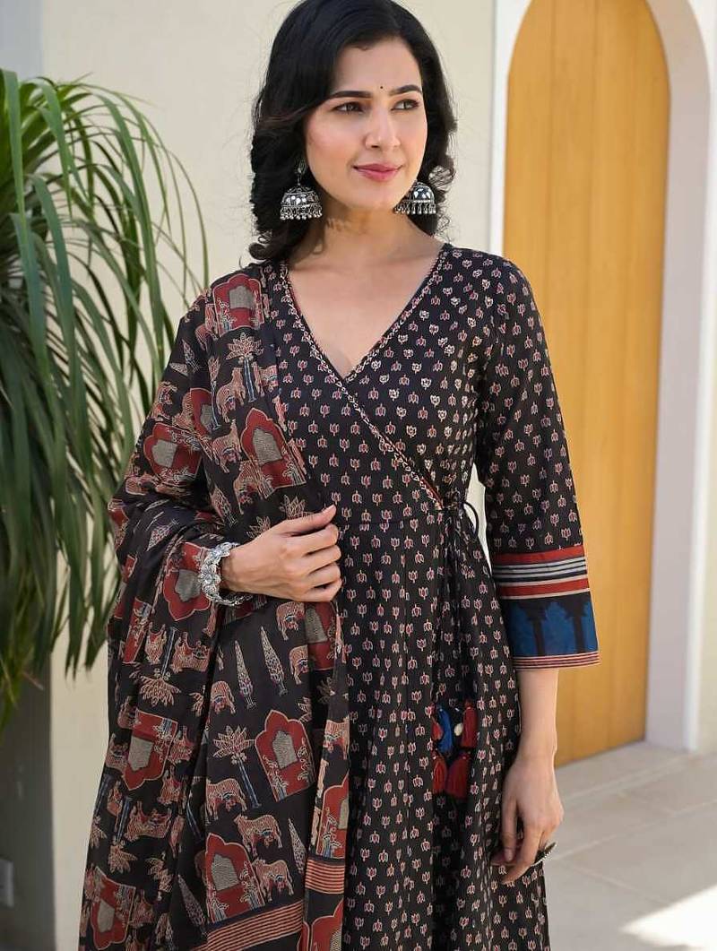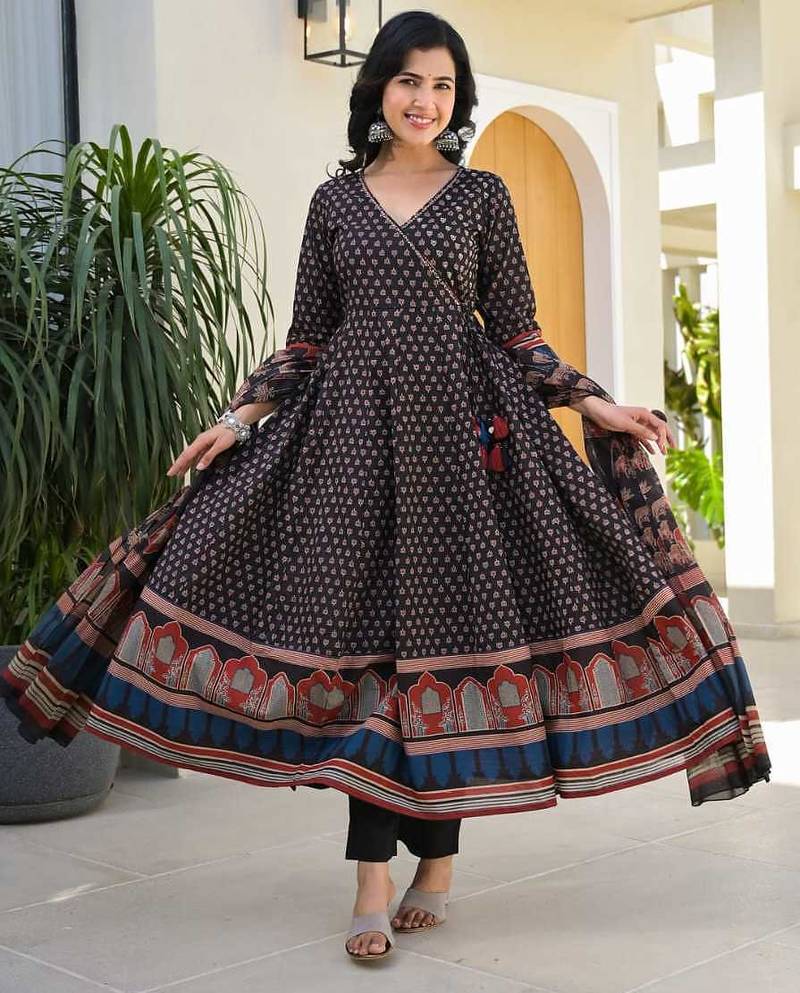 | Product Name | Black Floral Printed V Neck Pure Cotton Kurta With Trouser & Dupatta | |