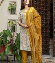 Yellow floral printed round neck pure cotton kurta with trouser & dupatta