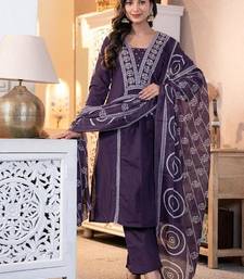 Aaysa women embroidered purple kurta set with printed dupatta
