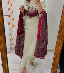 Product Name | Women Pure Cotton Embroidered Cream Kurta With Pant And Dupatta | |