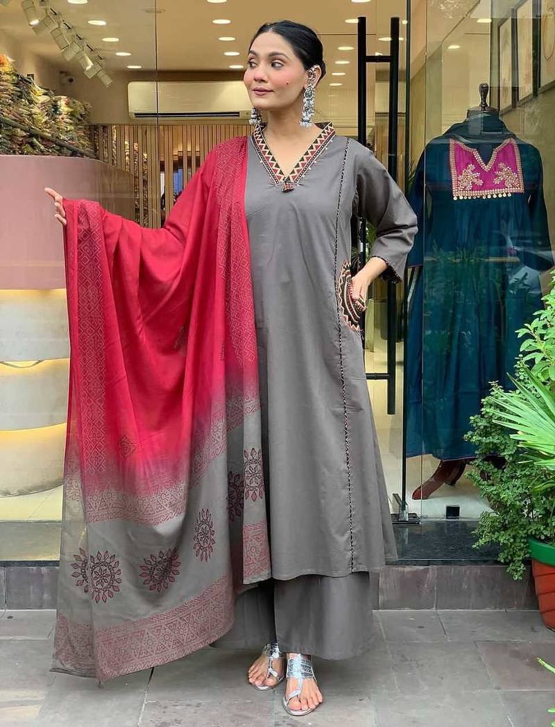 Product Name | Aaysa Women Pure Cotton Embroidered Grey Kurta With Pant And Dupatta | |