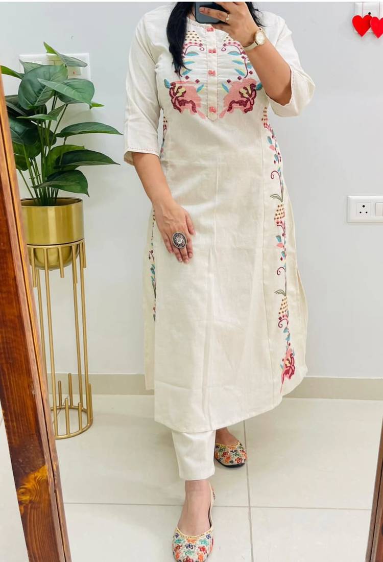 Product Name | Women Pure Cotton Embroidered White Kurta With Pant | |