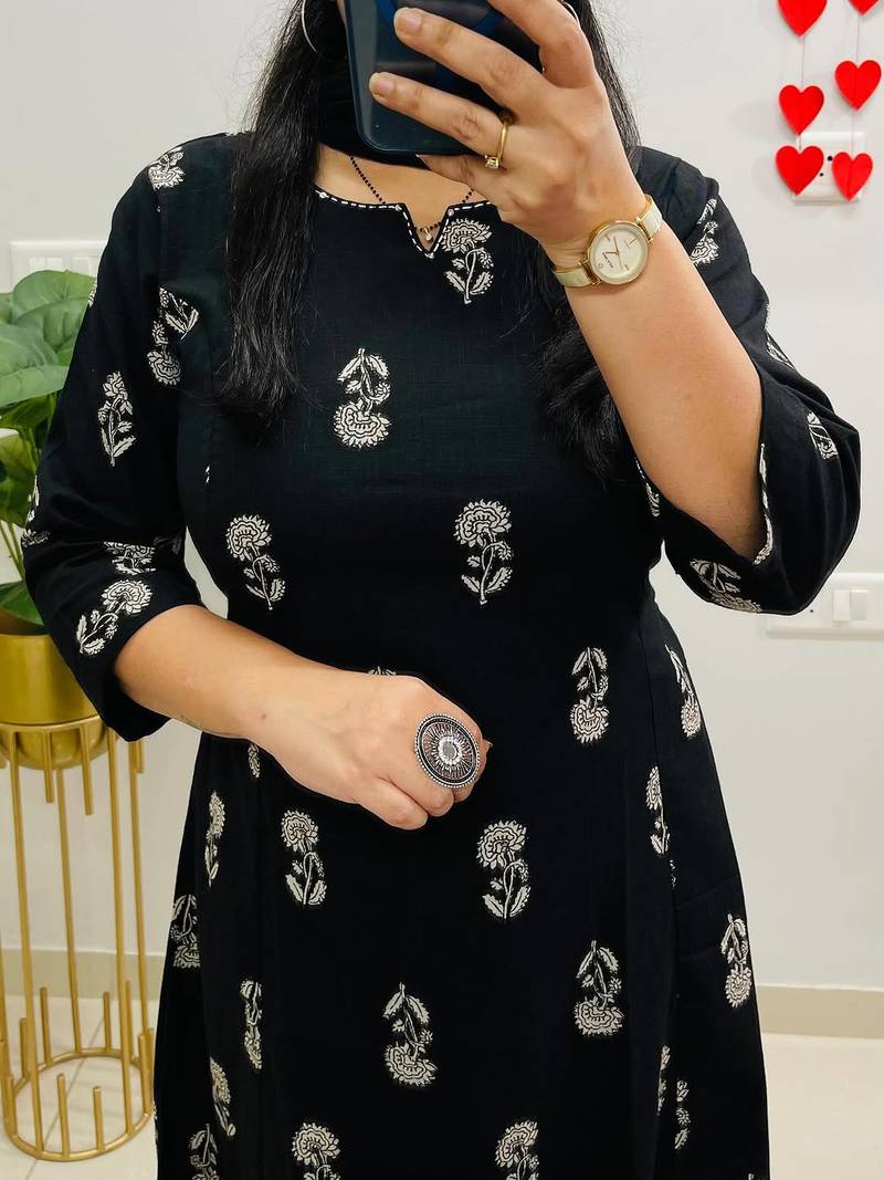 Product Name | Women Pure Cotton Printed Black Kurta With Pant And Dupatta | |