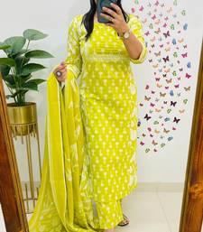 Product Name | Women Pure Cotton Printed Yellow Kurta With Pant And Dupatta | |