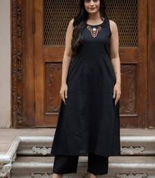 Step Out In Timeless Sophistication With This Elegant Floral Embroidered Black Pure Cotton Kurta And Trouser Set. The Rich Black Hue And Comfortable Cotton Fabric Are Elevated By Delicate Embroidery, Making This Set A Classic Addition To Your Wardrobe.Key Features And Comfort:Pure Cotton Comfort: Enjoy The Luxurious Feel Of 100% Breathable Pure Cotton. This Fabric Is Ideal For All Day Wear, Providing Comfort And A Crisp, Structured Look.Classic Black Hue: The Deep Black Color Is Universally Flattering And Incredibly Versatile, Easily Dressed Up Or Down For Any Occasion.Elegant Round Neck: The Traditional Round Neck Offers A Neat, Modest, And Comfortable Fit.Delicate Floral Detailing: Fine Floral Embroidery (Often In Contrasting Or Tone On Tone Threads) Adorns The Kurta, Typically Highlighting The Neckline, Yoke, Or Cuffs, Adding A Refined, Feminine Touch.Complete Ensemble: The Set Includes A Perfectly Matched Pair Of Black Cotton Trousers (Often A Comfortable Straight Cut Or Slim Fit) For A Cohesive, Ready To Wear Outfit.Sizing: Available In Sizes Ranging From Medium (M) To Double Extra Large (Xxl).Detail Specification Material Pure Cotton Color Black Neckline Round Neck Style Embroidered Kurta With Trousers Care Gentle Wash Recommended