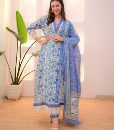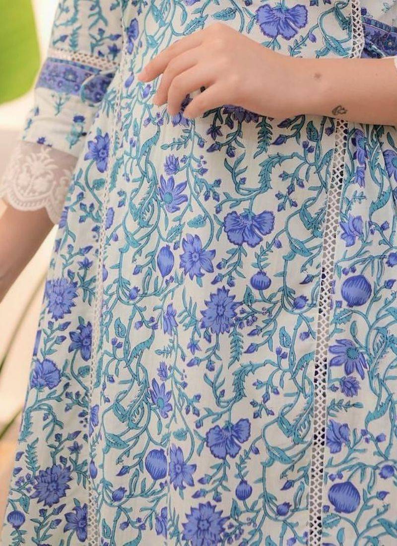 | Product Name | Floral Embroidered Blue V Neck Pure Cotton Kurta Set With Trouser & Dupatta | |