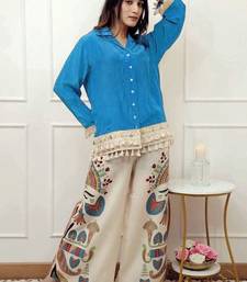 | Product Name | Blue Floral Embroidered Collar Neck Pure Cotton Co Ord Set | |