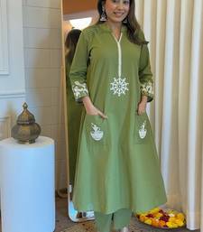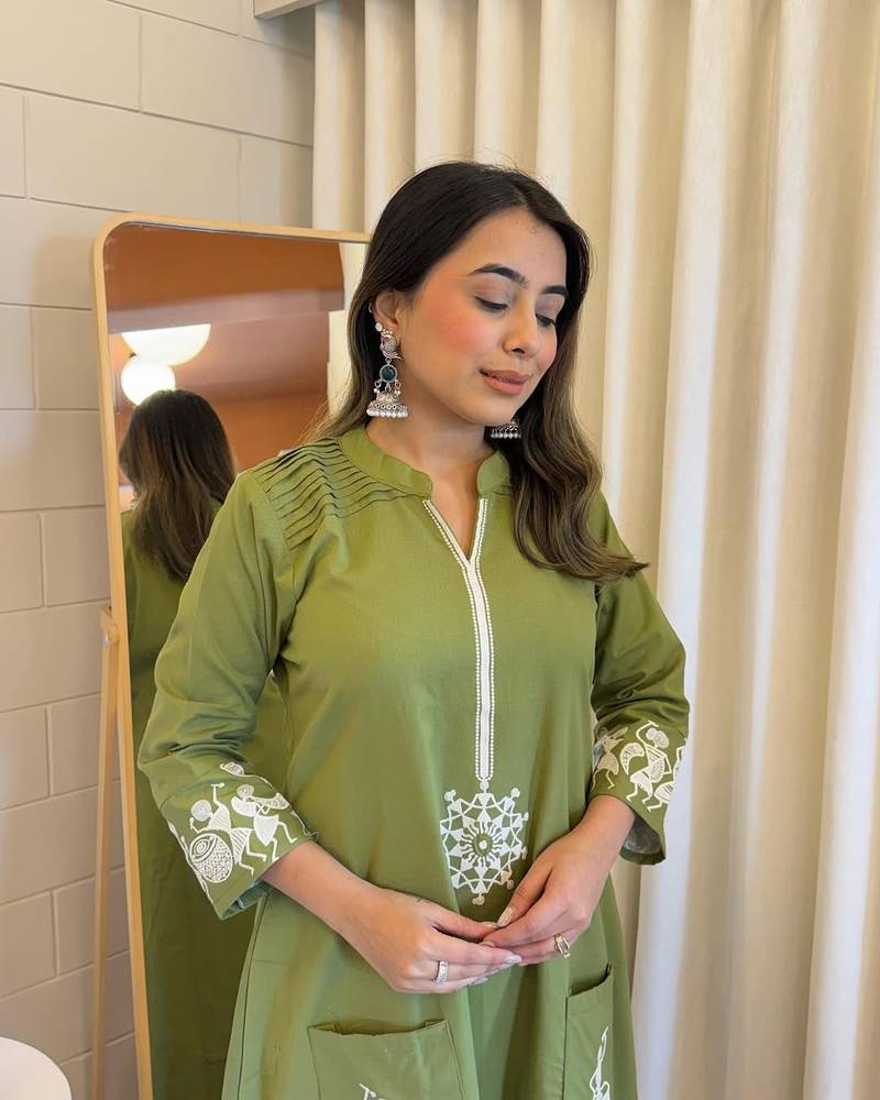 | Product Description | Refresh Your Ethnic Wardrobe With This Elegant Green Floral Embroidered Pure Cotton Co Ord Set, Designed For Effortless Comfort And Timeless Style. Made From Premium Quality Pure Cotton Fabric, This Co Ord Set Is Soft, Breathable, And Perfect For All Day Wear. The Kurta Features Delicate Floral Embroidery That Adds A Graceful Touch, While The Round Neckline And Relaxed Fit Ensure Ease And Elegance. The Matching Cotton Bottom Completes The Coordinated Look Beautifully. Ideal For Casual Outings, Office Wear, Festive Gatherings, And Everyday Ethnic Styling, This Green Co Ord Set Offers A Perfect Blend Of Comfort And Sophistication. Key Features: Color: Green Fabric: 100% Pure Cotton Pattern: Floral Embroidered Neckline: Round Neck Sleeves: Comfortable Full / 3 4th Sleeves (As Per Design) Set Includes: Embroidered Top & Matching Bottom Sizes Available: M To 3 Xl Occasion: Daily Wear, Office Wear, Casual, Festive |