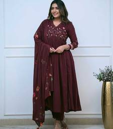 | Product Name | Floral Embroidered Maroon V Neck Cotton Kurta With Trouser & Dupatta Set | |