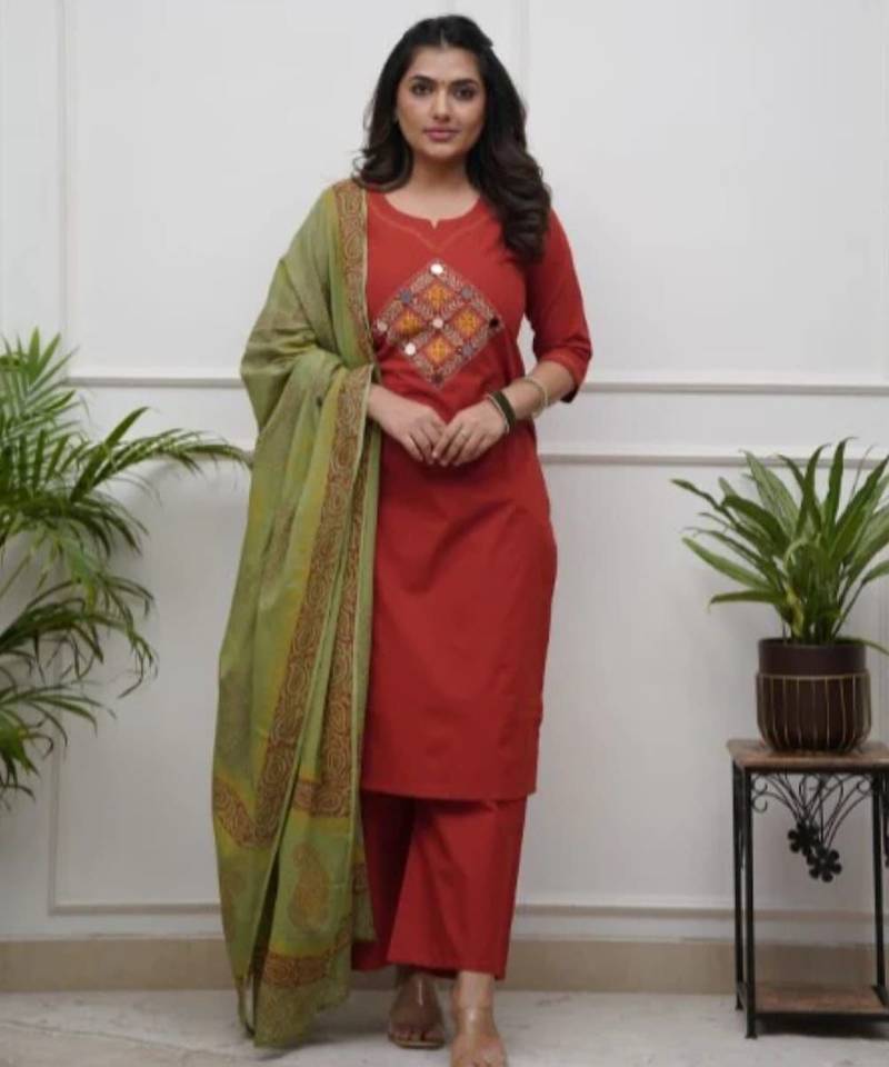 | Product Description | Brighten Your Ethnic Wardrobe With This Floral Embroidered Orange Round Neck Kurta Set, Complete With Matching Trousers And A Beautifully Crafted Dupatta. Designed For Women Who Love Vibrant Colors And Effortless Elegance, This Set Blends Traditional Charm With Modern Comfort, Making It Ideal For Festive Wear, Family Gatherings, Office Events, And Casual Outings. Key Features Premium Quality Fabric: Soft, Breathable, And Comfortable For All Day Wear. Beautiful Floral Embroidery: Intricate Embroidered Motifs Add A Touch Of Grace And Sophistication. Classic Round Neck Design: A Universally Flattering Neckline Suitable For All Body Types. Coordinated Trouser & Dupatta: Complete 3 Piece Set That Delivers A Polished, Ready To Wear Ethnic Look. Inclusive Sizes (M–3 Xl): Designed To Fit And Flatter Every Silhouette. Vibrant Orange Color: A Bold And Festive Shade That Stands Out Beautifully. Why You’ll Love It This Orange Embroidered Kurta Set Is Perfect For Women Who Enjoy Stylish Yet Comfortable Ethnic Wear. The Breathable Fabric, Paired With Fine Embroidery And A Coordinated Dupatta, Makes It A Versatile Outfit For Both Daytime And Evening Occasions. Perfect For Festive Celebrations & Cultural Events Family Gatherings & Special Occasions Office Wear & Semi Formal Meetings Casual Outings & Brunch Dates Traditional Functions & Travel Wardrobe Care Instructions Gentle Hand Wash Or Mild Machine Wash Use Soft Detergent Dry In Shade To Protect Embroidery And Fabric Quality |