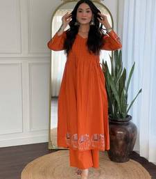 | Product Name | Floral Embroidered Orange V Neck Cotton Kurta Set With Trouser | |