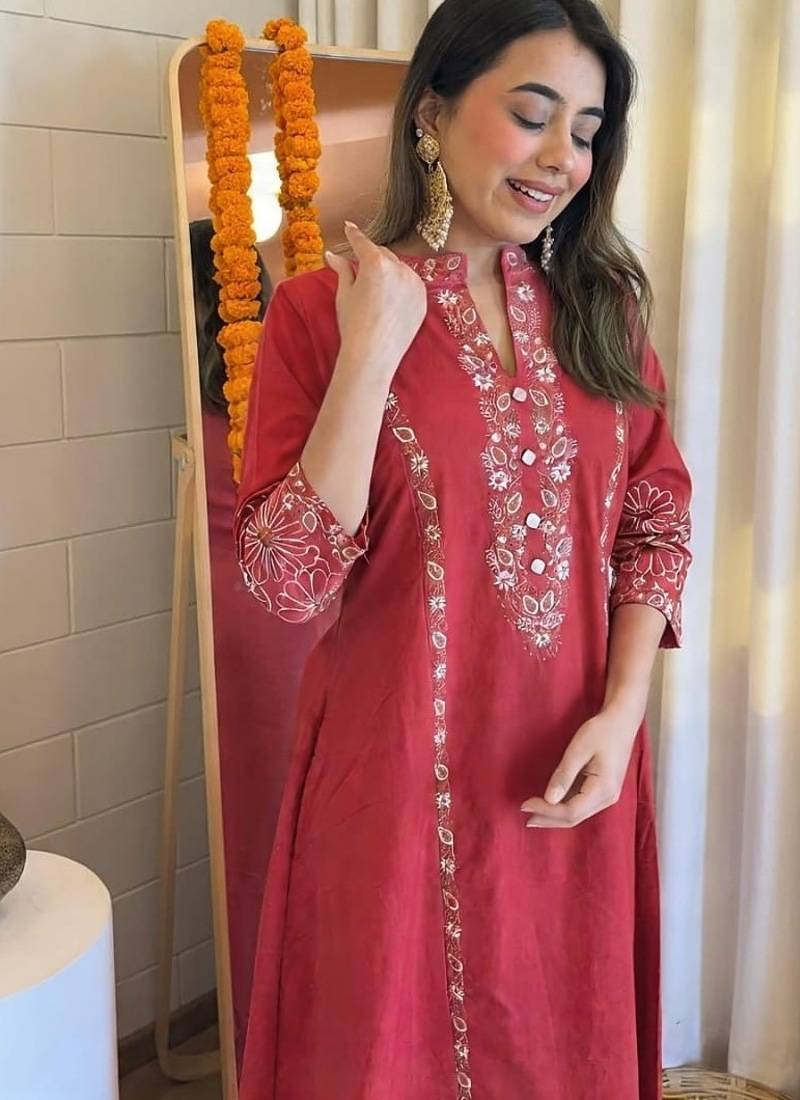 | Product Description | Add A Soft And Graceful Charm To Your Ethnic Wardrobe With This Pink Floral Embroidered Pure Cotton Kurta Set. Crafted From Premium Quality Pure Cotton, This Kurta Offers Superior Comfort And Breathability For All Day Wear. The Elegant Floral Embroidery On The Front And Sleeves Enhances Its Feminine Appeal, While The Round Neckline And Straight Silhouette Ensure A Flattering Fit. Paired With A Matching Cotton Trouser, This Set Is Ideal For Both Casual And Festive Occasions. Perfect For Office Wear, Family Gatherings, Festive Celebrations, Or Everyday Ethnic Styling, This Pink Kurta Set Blends Comfort With Timeless Elegance. Key Features: Color: Pink Fabric: 100% Pure Cotton Pattern: Floral Embroidered Neckline: Round Neck Sleeves: 3/4th Sleeves Set Includes: Kurta & Trouser Sizes Available: M To Xxl Occasion: Daily Wear, Office Wear, Festive, Casual Seo Keywords: