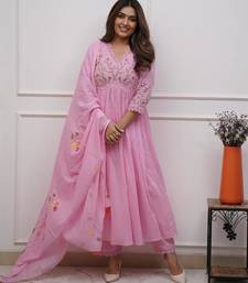 | Product Name | Floral Embroidered Pink V Neck Cotton Kurta With Trouser & Dupatta Set | |