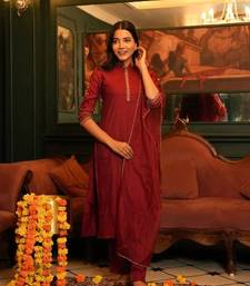 | Product Name | Floral Embroidered Red Round Neck Pure Cotton Kurta Set With Trouser & Dupatta | |