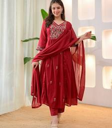 | Product Name | Floral Embroidered Red V Neck Cotton Floral Kurta With Trousers & Dupatta Set | |