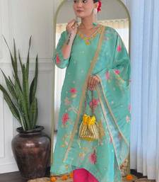 | Product Name | Floral Embroidered Sea Green V Neck Chinon Kurta Set With Trouser & Dupatta | |