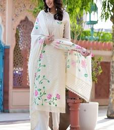 Floral embroidered v neck pure cotton kurta trosuer & dupatta set
