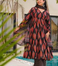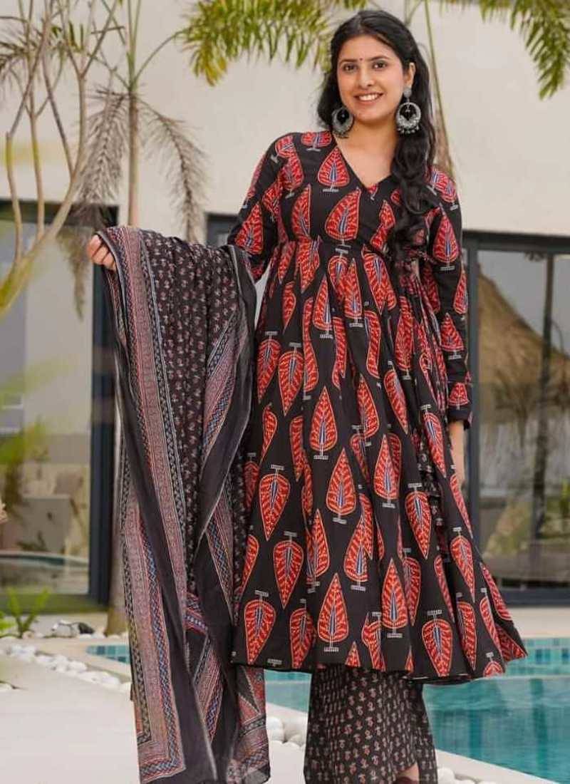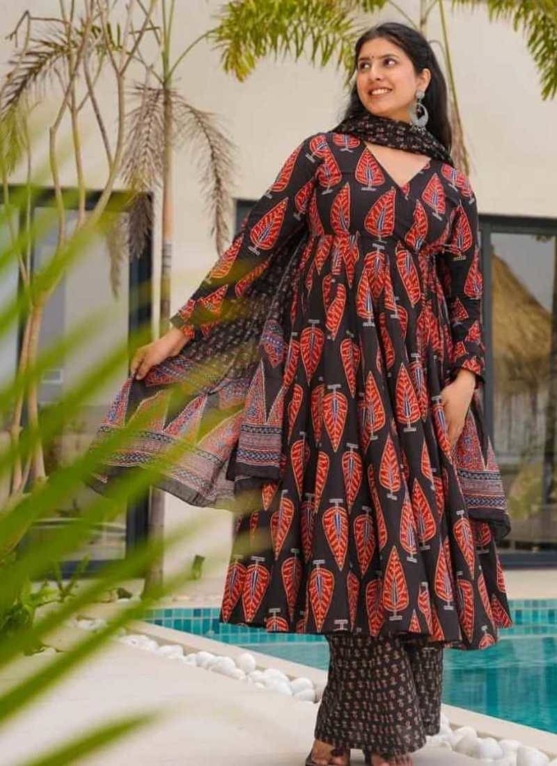 | Product Name | Floral Printed Black V Neck Cotton Kurta Set With Trouser & Dupatta | |