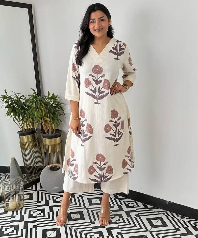 | Product Description | Embrace Sophisticated Daily Style With This Striking Floral Printed Black V Neck Pure Cotton Kurta And Trousers Set. Crafted From Premium, Breathable Pure Cotton, This Ensemble Combines The Timeless Elegance Of Black With Vibrant Floral Detailing, Ensuring You Stay Comfortable And Chic All Day Long. Product Highlights