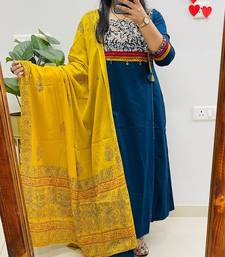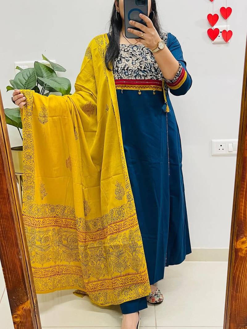 | Product Name | Floral Printed Blue Round Neck Cotton Floral Kurta With Trousers & Dupatta Set | |