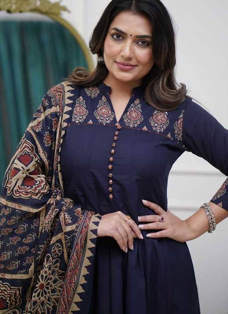 | Product Name | Floral Printed Blue Round Neck Cotton Floral Kurta With Trousers & Dupatta Set | |
