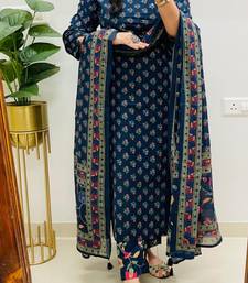 | Product Name | Floral Printed Blue Round Neck Pure Cotton Kurta Set With Trouser & Dupatta | |