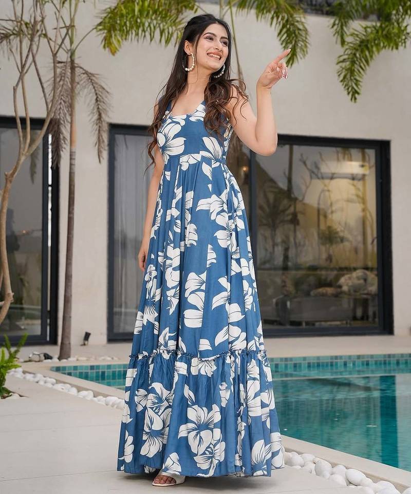 | Product Name | Floral Printed Blue V Neck Cotton Kurta Set With Trouser | |