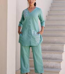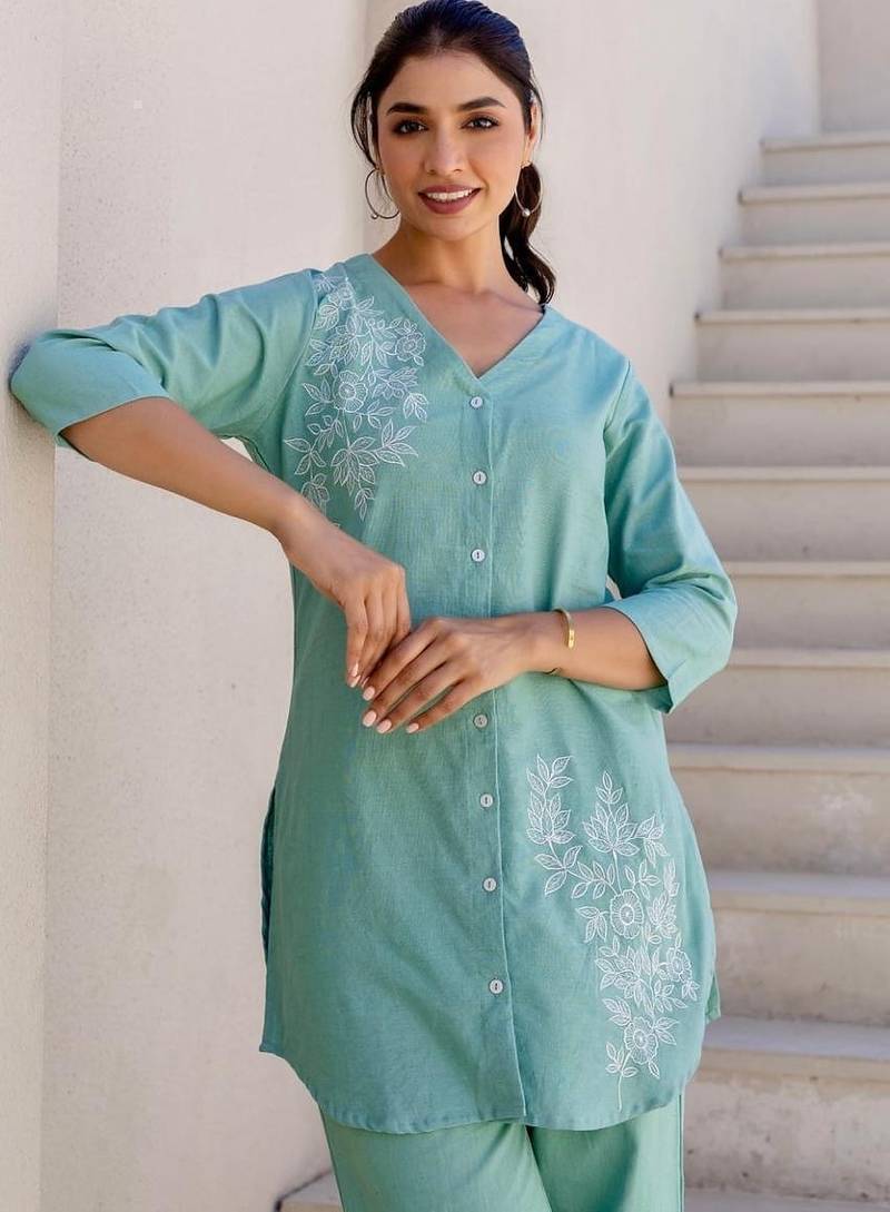 | Product Name | Floral Printed Blue V Neck Pure Cotton Co Ord Set | |