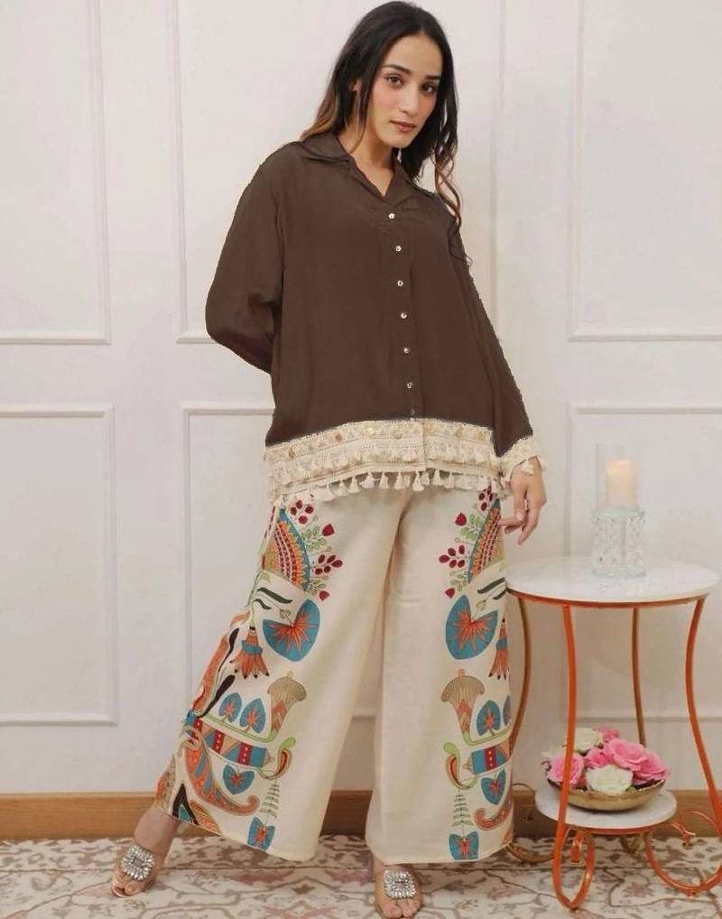 | Product Name | Floral Printed Brown Round Neck Cotton Co Ord Set | |